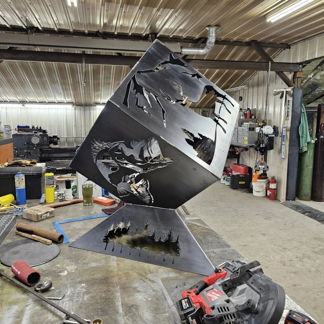 4 ft. x 8 ft. sheet capabilities from 24ga. up to 1-1/4 in. thick plate steel, custom and decorative signs, custom parts, spec drawing parts.